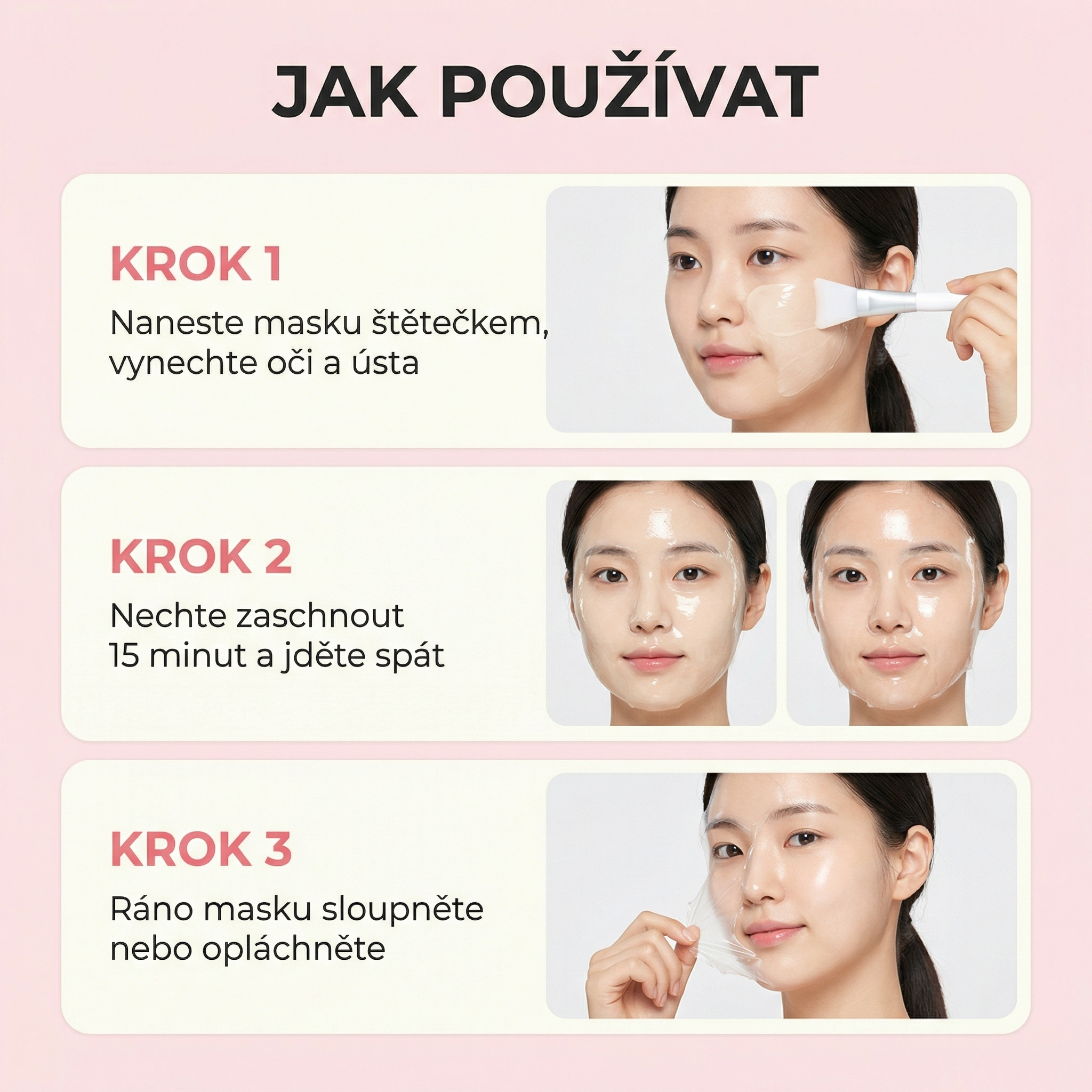 Kolagénová peel-off maska, která pracuje 8 hodin během spánku. Trojitá péče — pružnost, hydratace a zářivý lesk. Snadno se sloupne v jednom kuse.